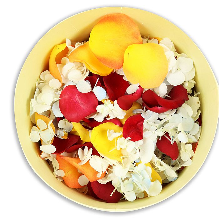 Celebrate in style with our vibrant and unique flower arrangement. This stunning bouquet combines the lively colors of Hydrangea, classic Rose, and elegant Chrysanthemum petals, meticulously arranged to create a captivating display.